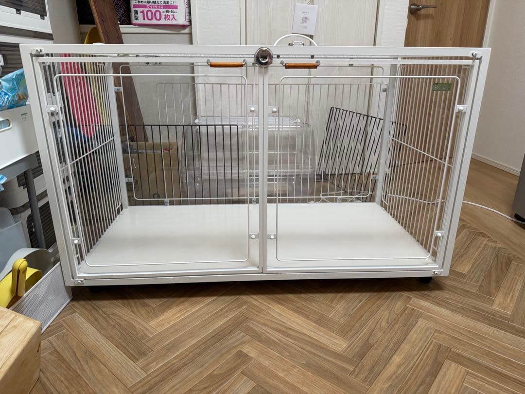 - パーピーをお迎えするのに、ゲージがほしかったものの、なかなかお部屋に合うものがなく、探していたところ、こちらを見つけました! 背面が板になっているので、壁の汚れも心配いらずで、とてもよいです。 床も毎朝ウェットティッシュで拭きますが汚れもすぐ取れて良し!! 高く見えるらしく、ワンコを見に来るお客様からも、ゲージ素敵だと好評です!! 一人で組み立てしましたが、30分もかからずできました!! 配送もスピーディーでとても助かりました!! またの機会がありましたら、よろしくお願い申し上げます。